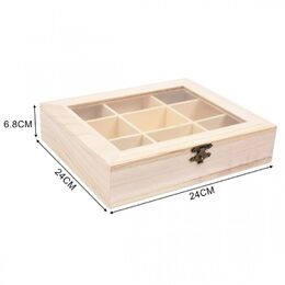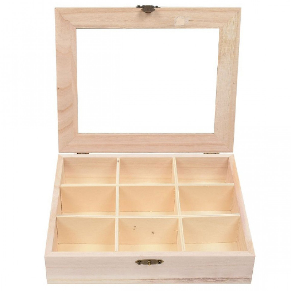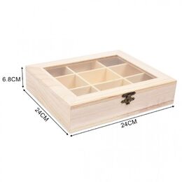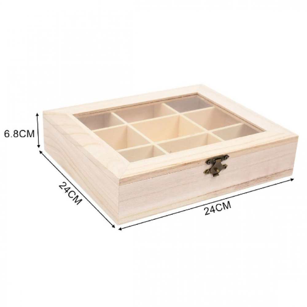 - 1 x Ξύλινη Κοσμηματοθήκη με Ανοιγόμενο Καπάκι με Ακρυλικό Τζάμι & 9 Χωρίσματα 24x24x6.8cm