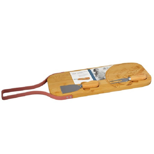 Ξύλινo - Bamboo Πλατώ Σερβιρίσματος Τυριών με Μεταλλική Λαβή, Μαχαίρι και Πιρούνι Τυριού 49x34x1.5 cm