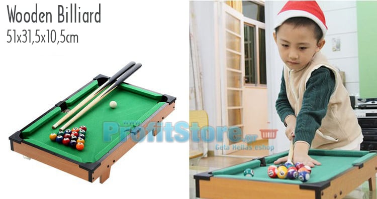 Ξύλινο Παιχνίδι Μπιλιάρδο - Πλήρες Σετ με Τσόχα, Στέκες & Μπάλες - 51x32cm