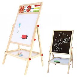 Ξύλινος Διπλός Μαγνητικός Πίνακας Γραφής & Ζωγραφικής με Αριθμητήριο - Άβακας 86cm Μαρκαδόρους & Κιμωλίας - Μαυροπίνακας