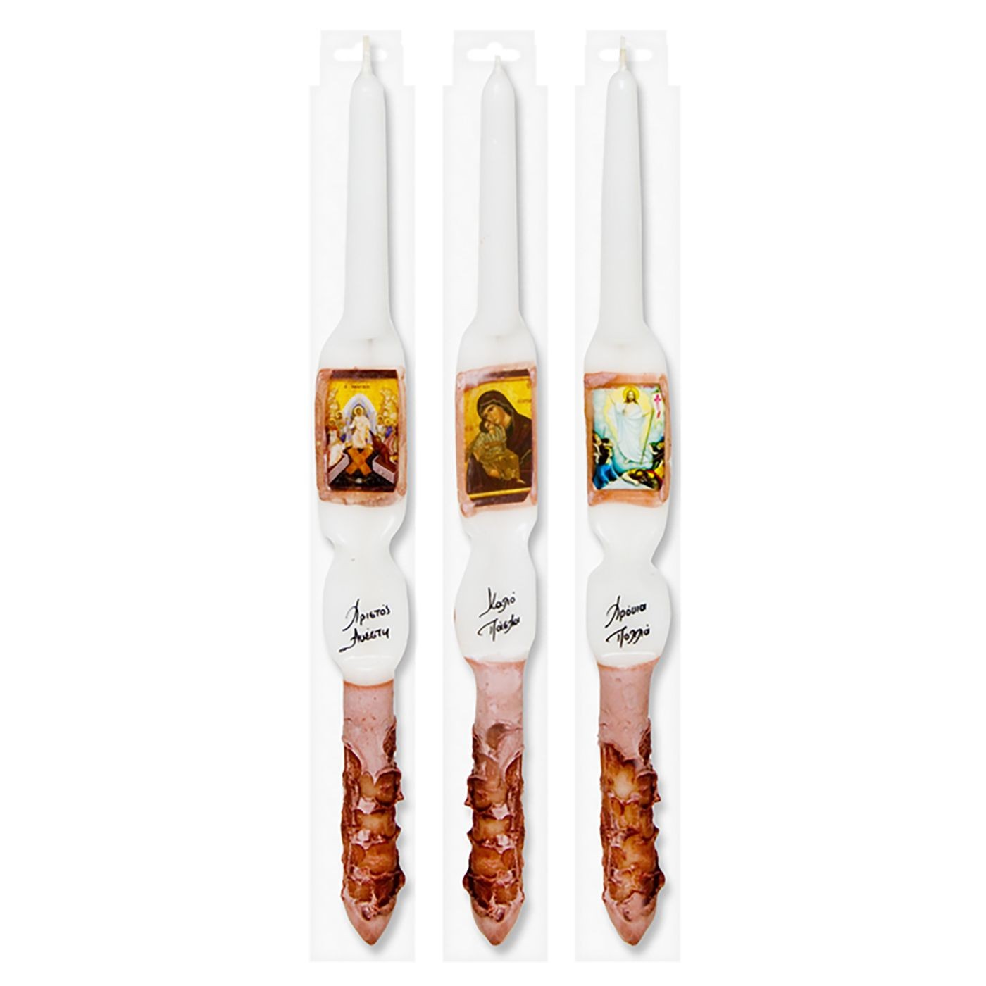 Η πασχαλινή λαμπάδα με θρησκευτική εικόνα αποτελεί μία κλασική και διαχρονική επιλογή για τον εορτασμό της Ανάστασης.