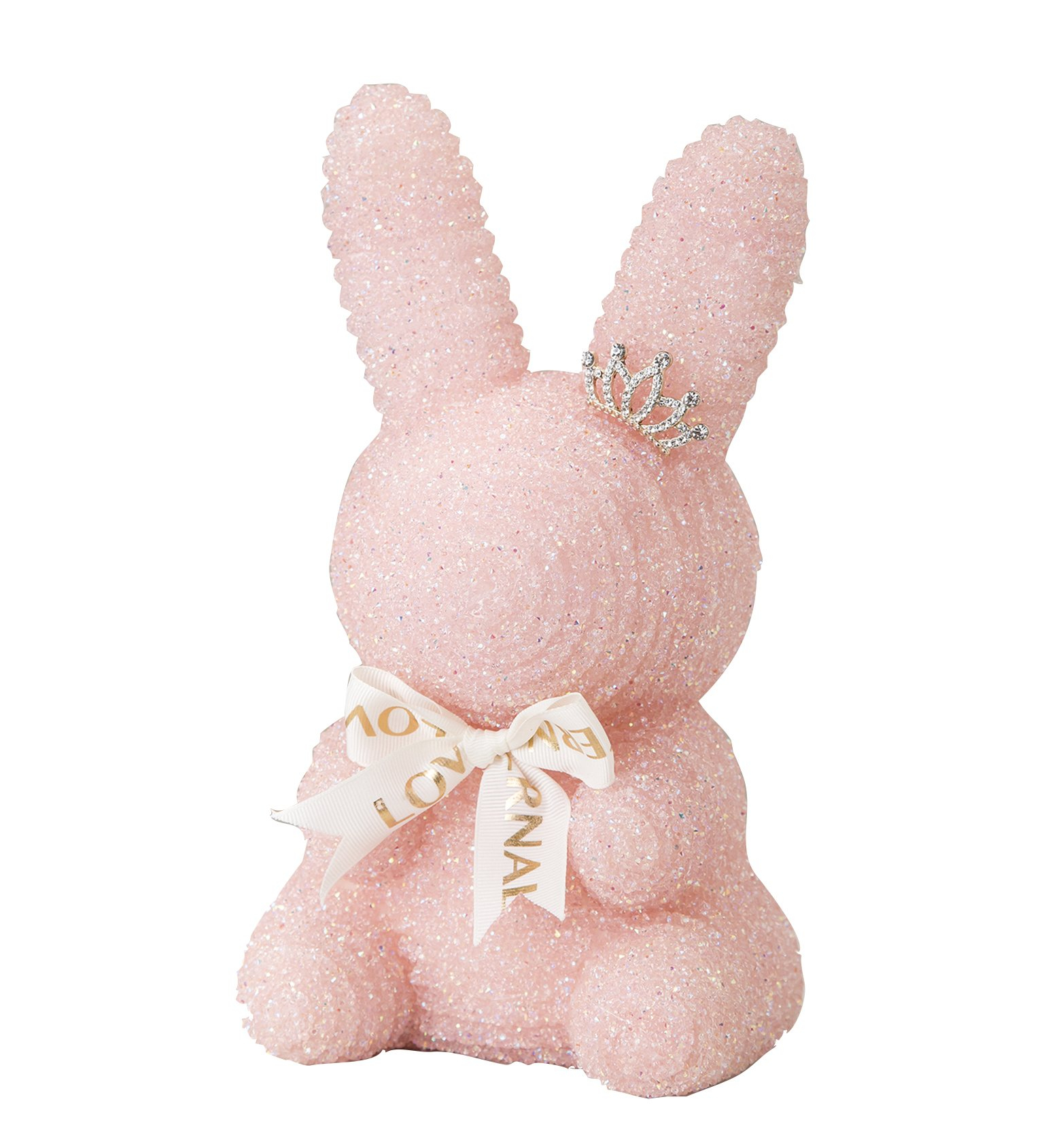 Με προσεγμένη κατασκευή και διακριτικές, λαμπερές λεπτομέρειες από στρας, αυτό το λαγουδάκι δεν είναι απλώς ένα διακοσμητικό αντικείμενο, αλλά μια ιδιαίτερη χειρονομία αγάπης.