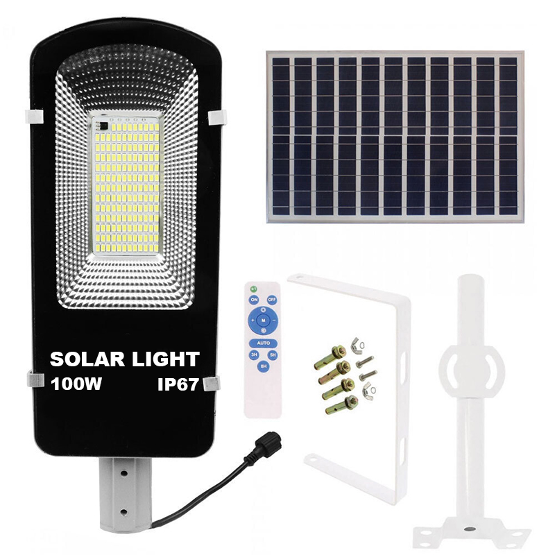 LED Αδιάβροχο Ηλιακό Φωτιστικό / Προβολέας Δρόμου 100W 12480LM με Τηλεχειριστήριο, Βάση Στήριξης & Χρονοδιακόπτη