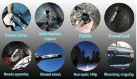 - Λειτουργίες φωτισμού: Κεντρικός λευκός φωτισμός (Δυνατός, μεσαίος, χαμηλός, strobe, SOS), Πλευρικός λευκός φωτισμός (Δυνατός, χαμηλός), Πλευρικός κόκκινος φωτισμός (Δυνατός, strobe)