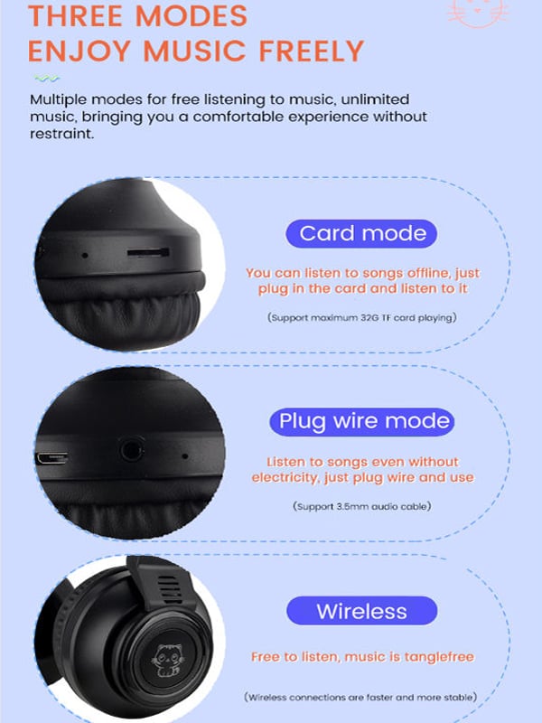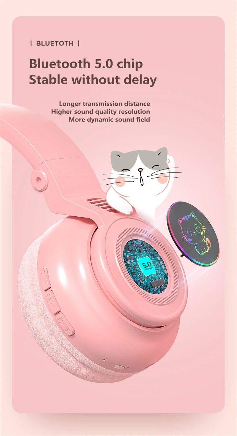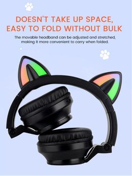 Φορητά ακουστικά με αυτάκια γάτας που φωτίζουν πολύχρωμα με LED, συνδέονται μέσω bluetooth ή καλωδίου 3,5mm με το κινητό, το τάμπλετ ή το PC σας για να απολαύσετε την αγαπημένη σας μουσική όπου κι αν βρίσκεστε!