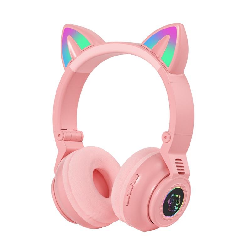 LED Bluetooth Ασύρματα On-Ear Ακουστικά Αυτιά Γάτας με Εναλλασσόμενο Φωτισμό - Wireless Cat Ear Headphones Ροζ