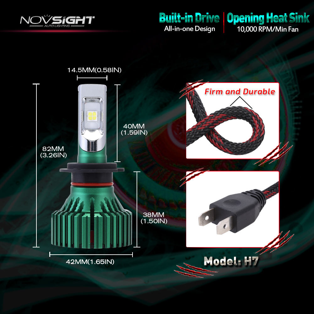 Φωτίστε το δρόμο σας περισσότερο εγκαθιστώντας ένα CREE LED kit H7 / 6500Κ υψηλής ποιότητας NovSight, με απίστευτη κατανομή φωτός, κατανάλωση μόλις 60W και εξαιρετικά μεγάλη συνολική φωτεινότητα 16000LM.