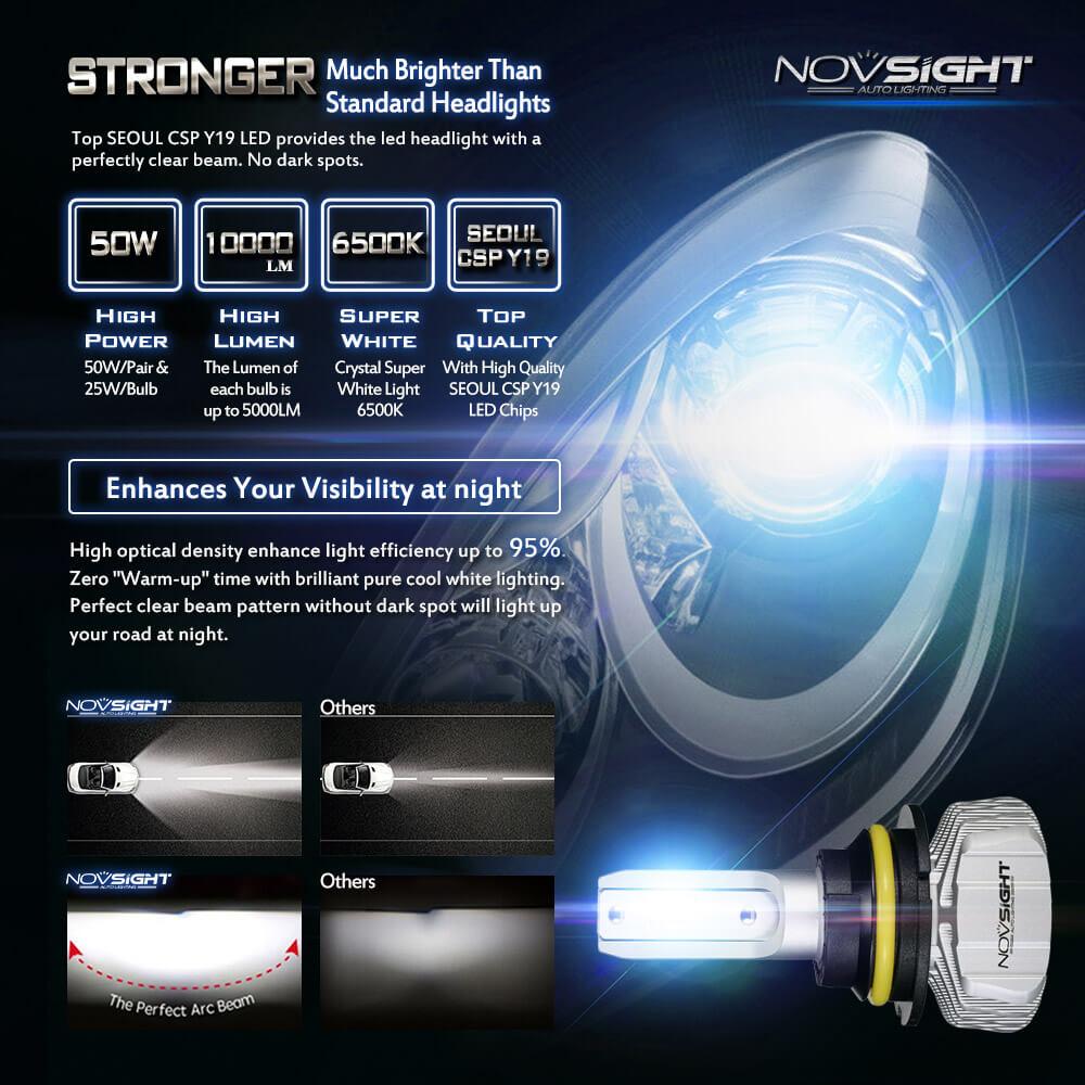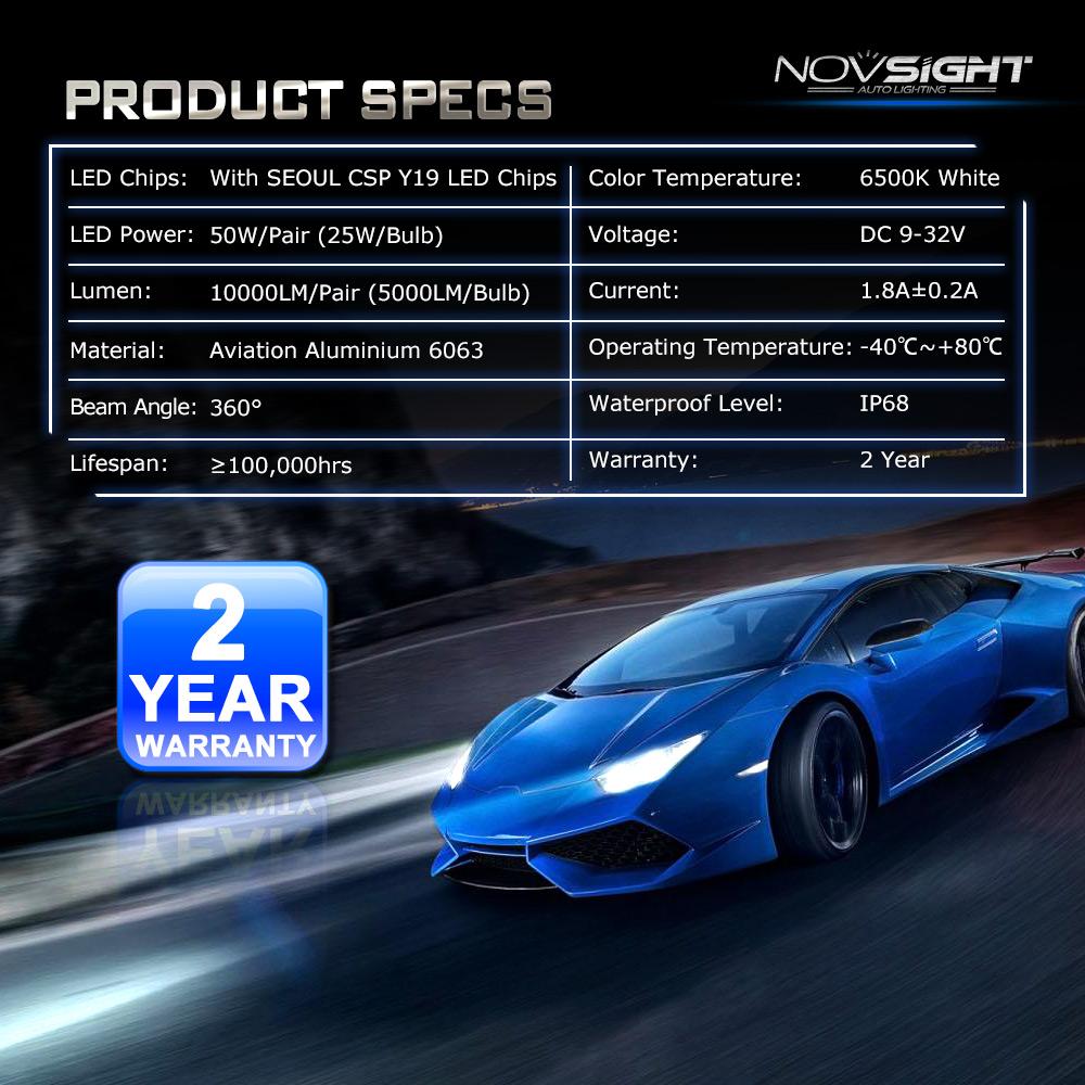 Φωτίστε το δρόμο σας περισσότερο εγκαθιστώντας ένα CREE LED kit H4 / 6500Κ υψηλής ποιότητας NovSight, με απίστευτη κατανομή φωτός, κατανάλωση μόλις 50W και εξαιρετικά μεγάλη συνολική φωτεινότητα 10000LM.