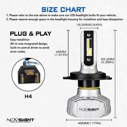 Φωτίστε το δρόμο σας περισσότερο εγκαθιστώντας ένα CREE LED kit H4 / 6500Κ υψηλής ποιότητας NovSight, με απίστευτη κατανομή φωτός, κατανάλωση μόλις 50W και εξαιρετικά μεγάλη συνολική φωτεινότητα 10000LM.