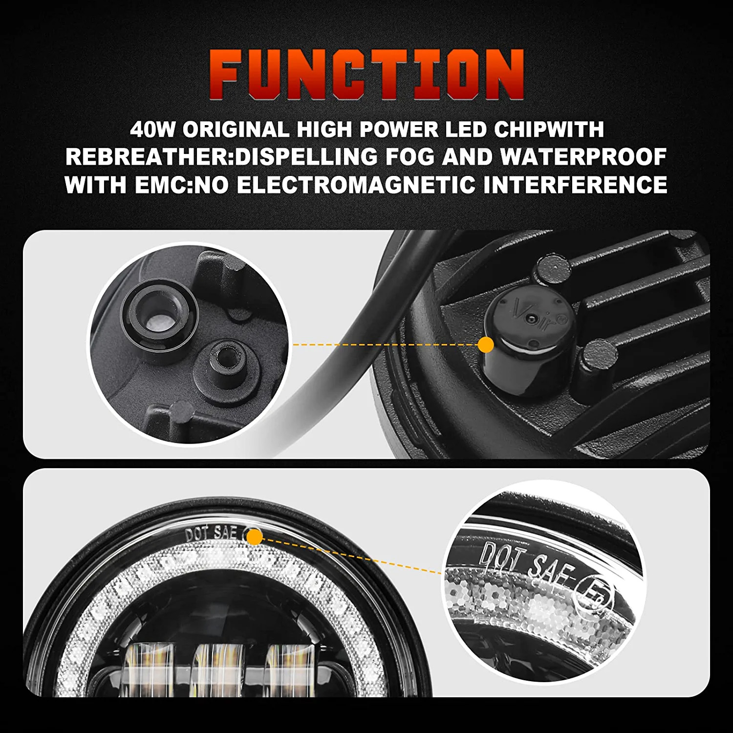 LED Universal Αδιάβροχοι Προβολείς Ομίχλης Angel Eyes 4.5" 40W 6000-6500K για Μοτοσυκλέτες