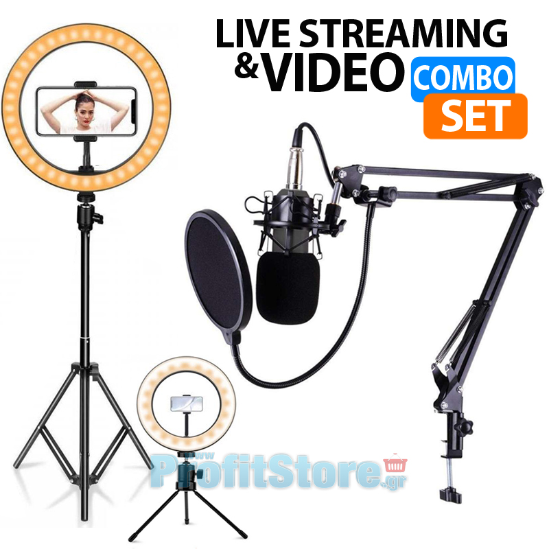 Live Streaming & Video Combo Set με Πυκνωτικό Μικρόφωνο USB & Ring Light Δαχτυλίδι 26cm με 2 Τρίποδα - ASMR, TikTok, Studio, Youtube, Instagram Story