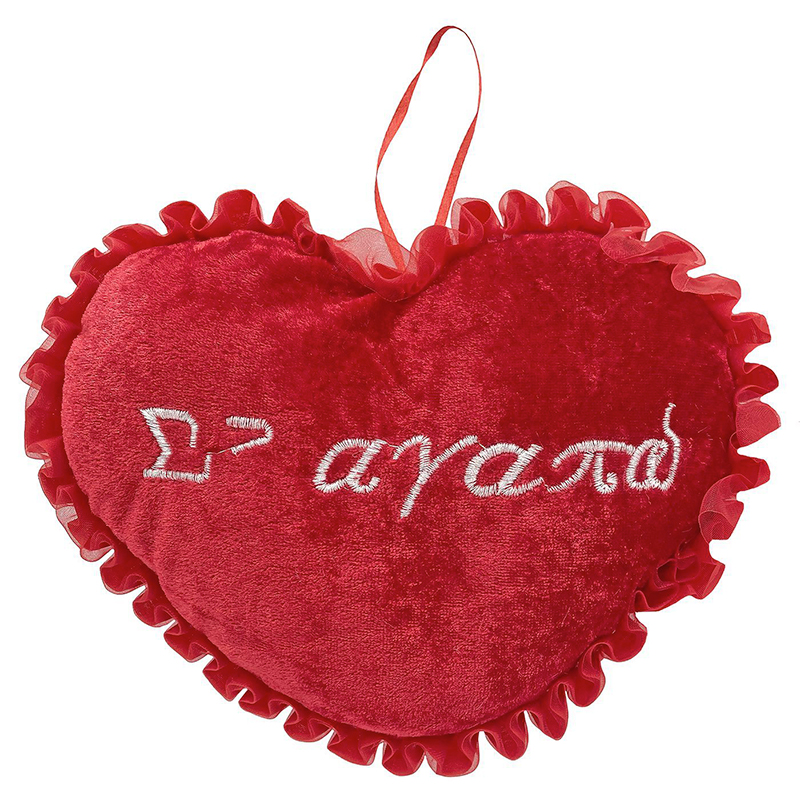 Λούτρινη Κόκκινη Καρδιά "Σ᾽αγαπώ" με Σούρα 22 x 17 cm