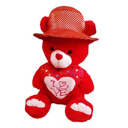 Λούτρινο Αρκουδάκι με Καρδιά στο Στήθος και Καπέλο 45εκ Καθιστό.