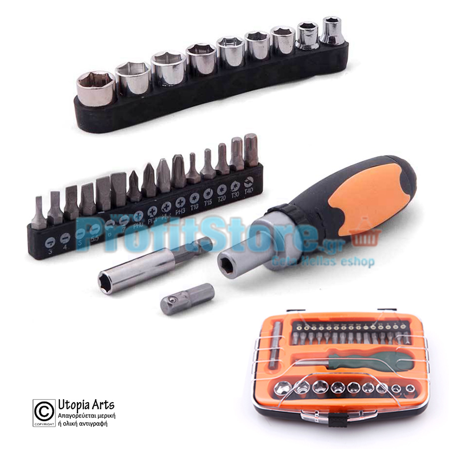 Μαγνητικό Κατσαβίδι Καστάνιας με Μύτες, Torx, Allen, Καρυδάκια CR-V - Σετ 27 Τεμαχίων