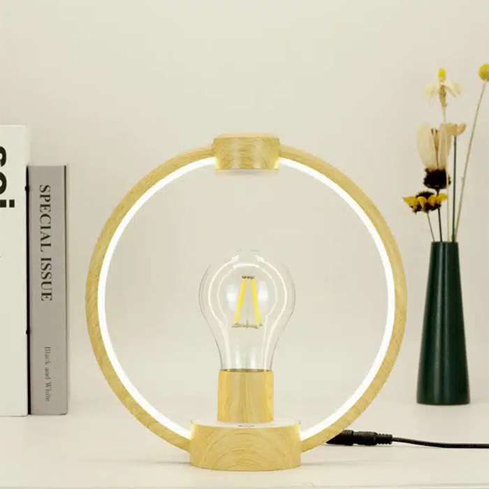 Μαγνητικό Περιστρεφόμενο Επιτραπέζιο Φωτιστικό - Αιωρούμενη Λάμπα με Εφέ Καφέ Ξύλου Home Theory Light Wood Grain