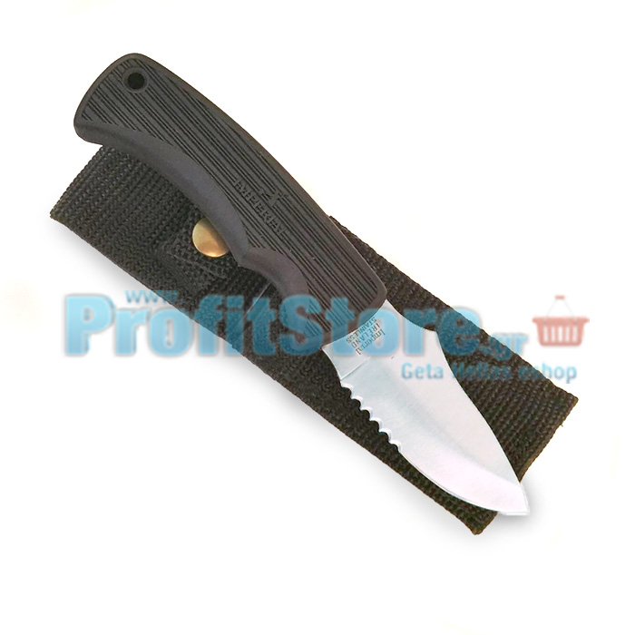 Ποιοτικό μαχαίρι επιβίωσης με κοντή λάμα και λαβή Zytex κατάλληλο για κυνήγι, ψάρεμα, καταδύσεις. Συνοδεύεται από θήκη ζώνης με κούμπωμα ασφαλείας.