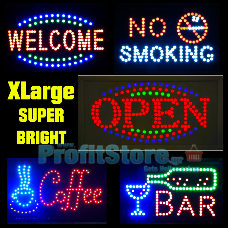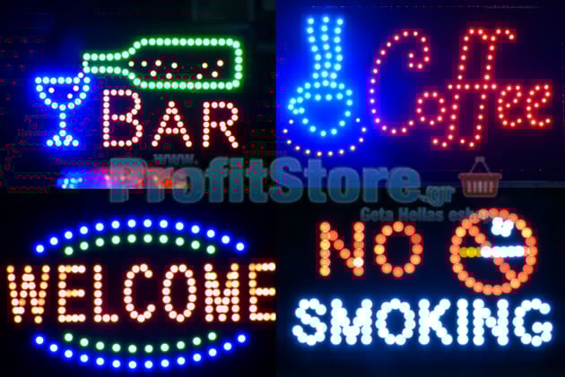 - Φωτεινές διακοσμητικές επιγραφές με κινούμενα led μεγάλης διάστασης και υψηλής φωτεινότητας.