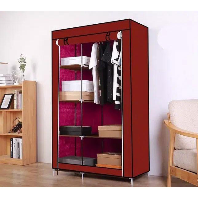 Μεγάλη Υφασμάτινη Φορητή Ντουλάπα - Γκαρνταρόμπα με Μεταλλικό Σκελετό και Ράφια για Ρούχα, Παπούτσια και Λευκά Είδη 105x45x175cm Μπορντώ