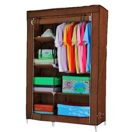 Μεγάλη Υφασμάτινη Φορητή Ντουλάπα με Μεταλλικό Σκελετό για Ρούχα και Λευκά Είδη 90x45x170cm Καφέ