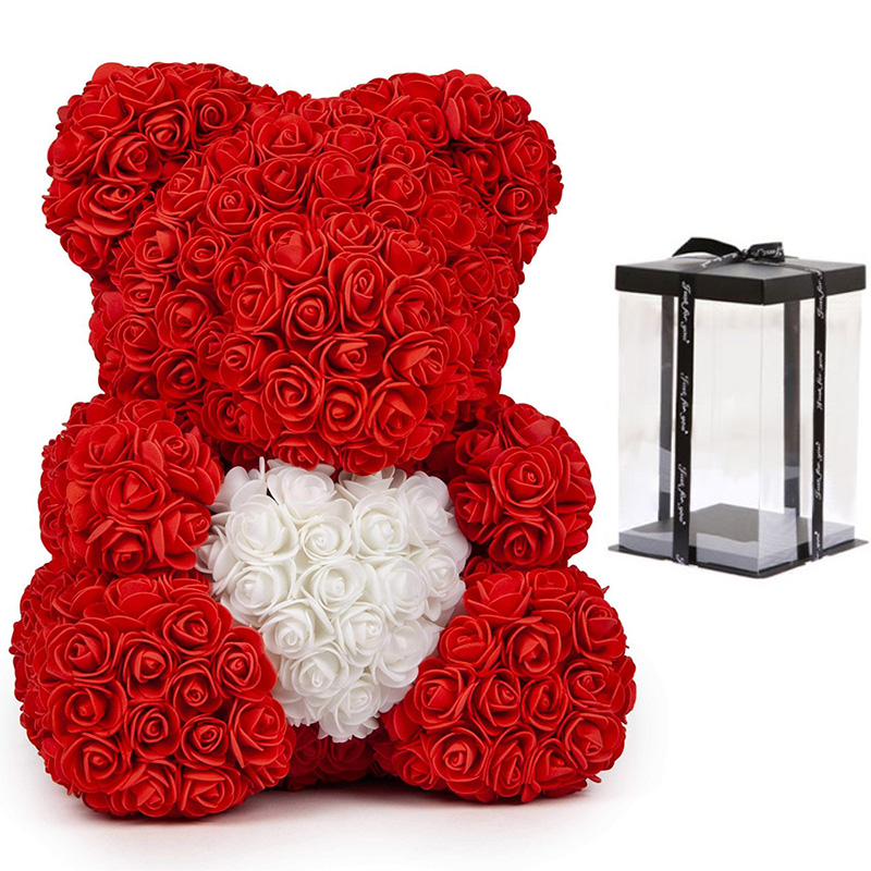 Μεγάλο Τριανταφυλλένιο Αρκουδάκι με Καρδιά 40cm Σε Συσκευασία Δώρου - Δώρο για Άγιο Βαλεντίνο - Τεχνητά Ροδοπέταλα Τριαντάφυλλα Κόκκινο