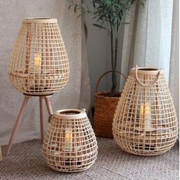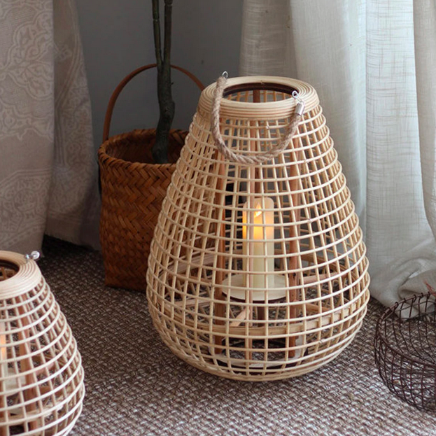 Μεγάλο Κρεμαστό & Επιδαπέδιο Διακοσμητικό Boho Φαναράκι Bamboo Καφέ 38x38x48cm