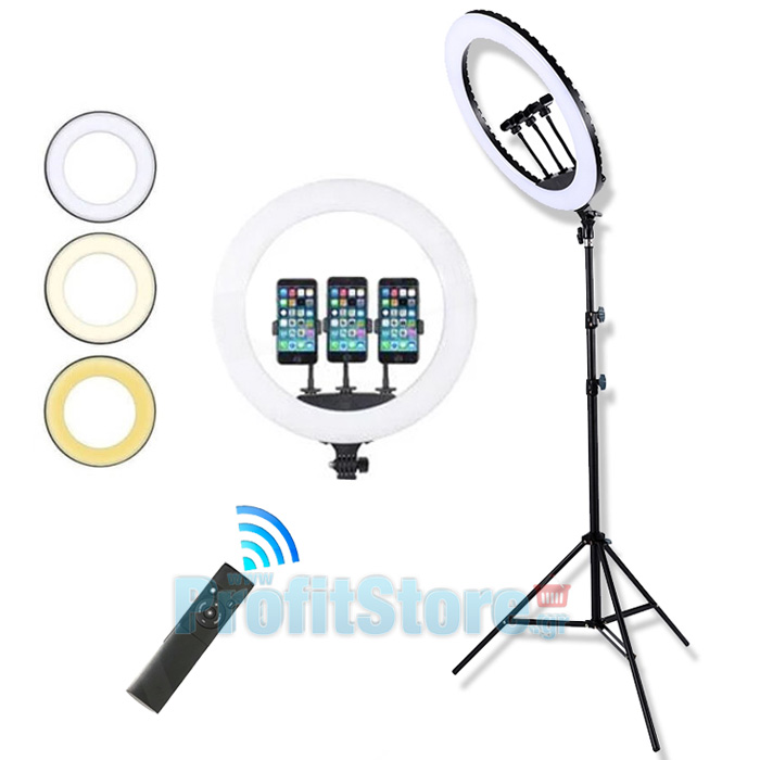 Μεγάλο Φωτογραφικό Δαχτυλίδι 52cm Τριών Βάσεων Κινητού & Κάμερας με Φορτιστή USB & Χειριστήριο - Φωτιστικό Ring Light LED 3200K - 6000K, Τρίποδο