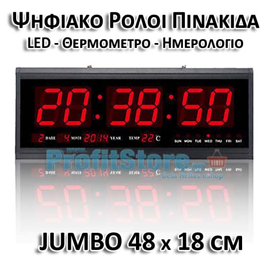 Μεγάλο Ψηφιακό Ρολόι Τοίχου - Πινακίδα LED με Θερμόμετρο και Ημερολόγιο Jumbo Clock TL4819