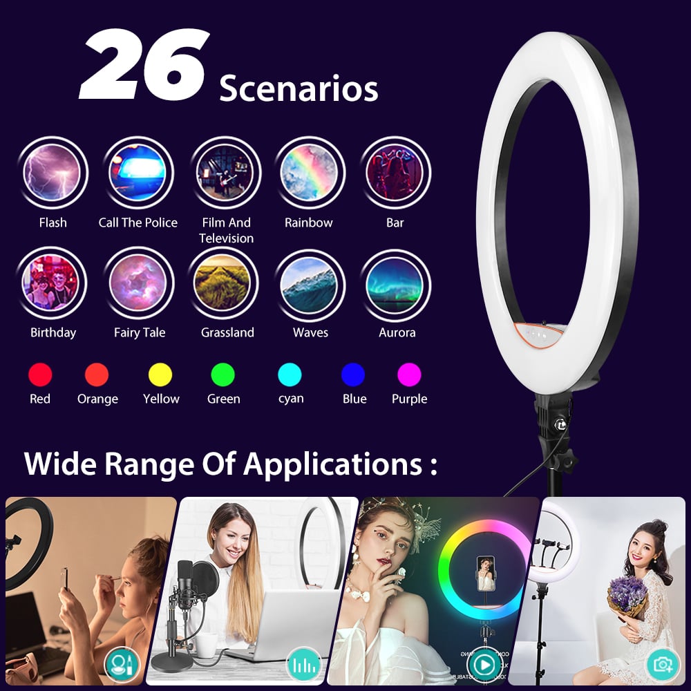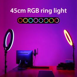 Μεγάλο RGB Ring Light LED 45cm Πολύχρωμο Αφής με Ασύρματο Χειριστήριο & 2 x USB Φορτιστής - Φωτογραφικό Φωτιστικό Δαχτυλίδι Τρίποδο & 3 x Βάση Στήριξης Κινητού