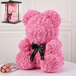 Μεγάλο Τριανταφυλλένιο Αρκουδάκι με Φιόγκο 40cm Σε Συσκευασία Δώρου - Δώρο για Άγιο Βαλεντίνο - Τεχνητά Ροδοπέταλα Τριαντάφυλλα