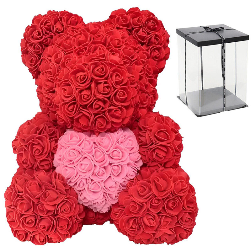Μεγάλο Τριανταφυλλένιο Αρκουδάκι με Καρδούλα 40cm Σε Συσκευασία Δώρου - Δώρο για Άγιο Βαλεντίνο - Τεχνητά Ροδοπέταλα Τριαντάφυλλα σε 4 χρώματα