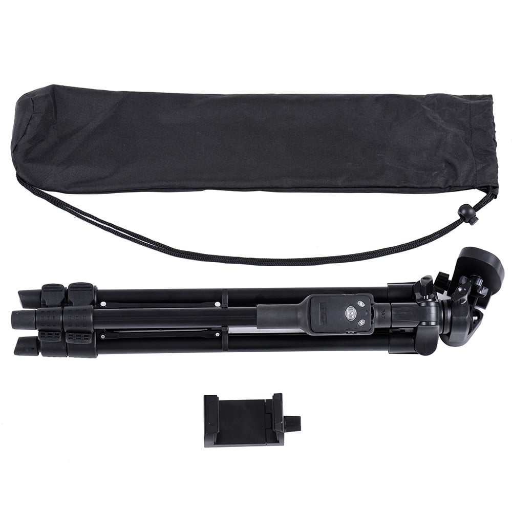 Ασύρματο τηλεχειριστήριο απελευθέρωσης κλείστρου Bluetooth Remote Shutter σε συνδυασμό με μεγάλο πτυσσόμενο τρίποδο στήριξης με χερούλι ευθυγράμμισης για να μπορείτε να στηρίξετε σταθερά το κινητό σας για απίθανες φωτογραφίες selfies!