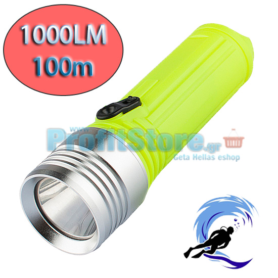 Μεγάλος Αδιάβροχος Υποβρύχιος Καταδυτικός Φακός 1000Lm T6 LED 100m