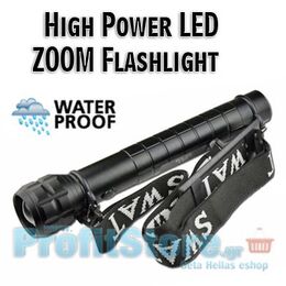 Μεγάλος Φακός Προβολέας LED ΖΟΟΜ Μεταλλικός Υψηλής Φωτεινότητας με Πυξίδα