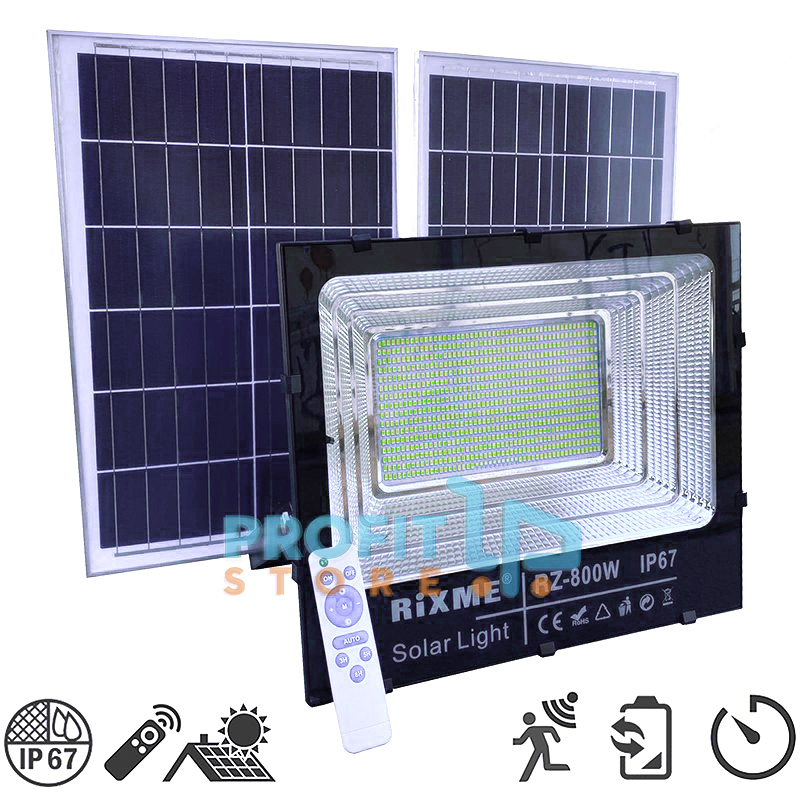 Μεγάλος Ηλιακός Προβολέας LED, 800W, Αδιάβροχος IP67 με 2 Φωτοβολταϊκά Πάνελ, Τηλεχειριστήριο, Αισθητήρα Κίνησης & Χρονοδιακόπτη, RZ-800W