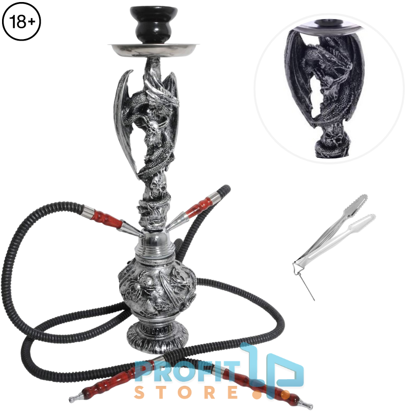 Μεγάλος Ναργιλές με 2 Σωλήνες - Ασημί Δράκος - Shisha Hookah Silver Dragon - 49cm