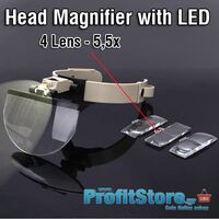 Μεγάλος μεγεθυντικός φακός κεφαλής με φωτισμό LED. Ιδιαίτερα πρακτικός για εργασίες που απαιτούν ελεύθερα χέρια, μικρο επισκευές, διάβασμα κλπ. Κατάλληλος και για όσους φορούν γυαλιά. Περιλαμβάνει 3 επιπλέον φακούς με μεγέθυνση 1.5x, 2x, 2.5x, 3,5x και συνδυαστικά 4,5x και 5,5x
