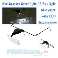Μεγεθυντικός φακός κεφαλής προσαρμοσμένος σε σκελετό γυαλιών. Ιδιαίτερα πρακτικός για εργασίες που απαιτούν ελεύθερα χέρια. Κατάλληλος για μικρο-επισκευές αλλά και για διάβασμα. Περιλαμβάνει 5 φακούς με μεγέθυνση 1.0x, 1.5x, 2.0x, 2.5x και 3,5x