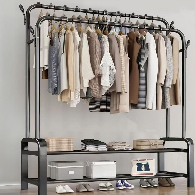 Μεταλλική Διπλή Κρεμάστρα - Καλόγερος - Παπουτσοθήκη Δαπέδου με 2 Ράφια και Βάρος Αντοχής έως 48 Kg - 110 x 56 x 157cm