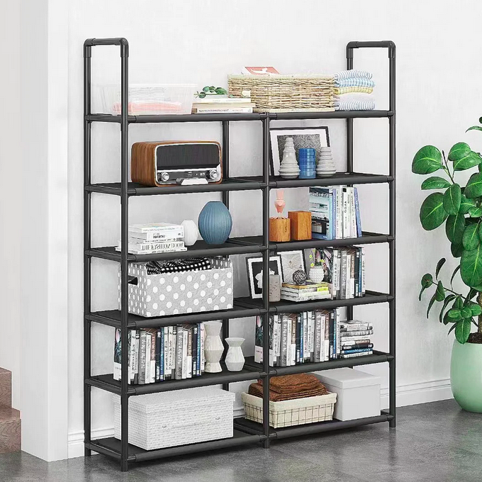 Διπλή Παπουτσοθήκη & Ραφιέρα Δαπέδου με 6 Ράφια 115x80x22cm - Storage Rack σε Δύο Χρώματα