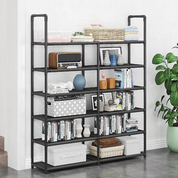 Διπλή Ραφιέρα Δαπέδου με 6 Ράφια 115x80x22cm - Storage Rack Μαύρο
