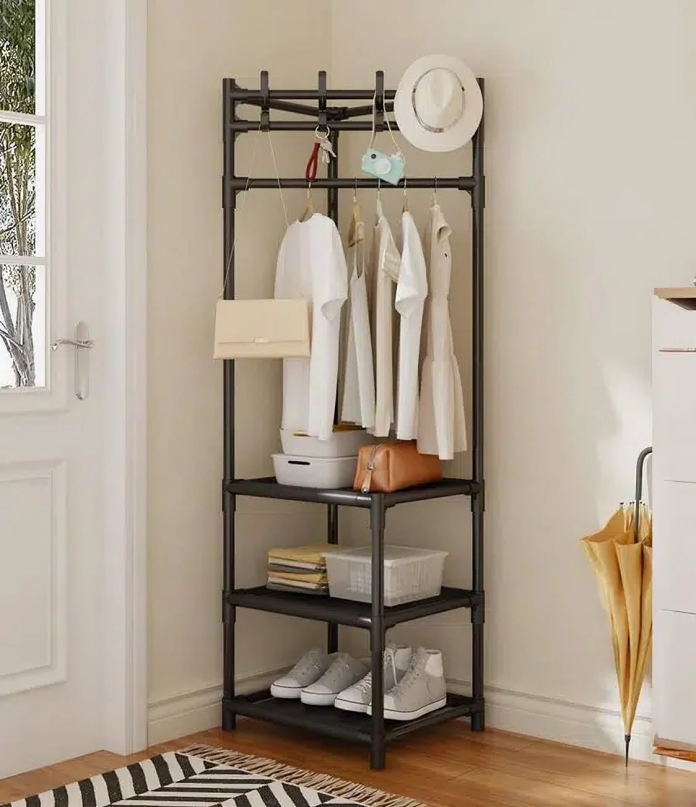 Μεταλλική Γωνιακή Κρεμάστρα Δαπέδου - Παπουτσοθήκη με 3 Ράφια - 185 x 40 x 40 εκ - Three Layers Corner Coat Rack
