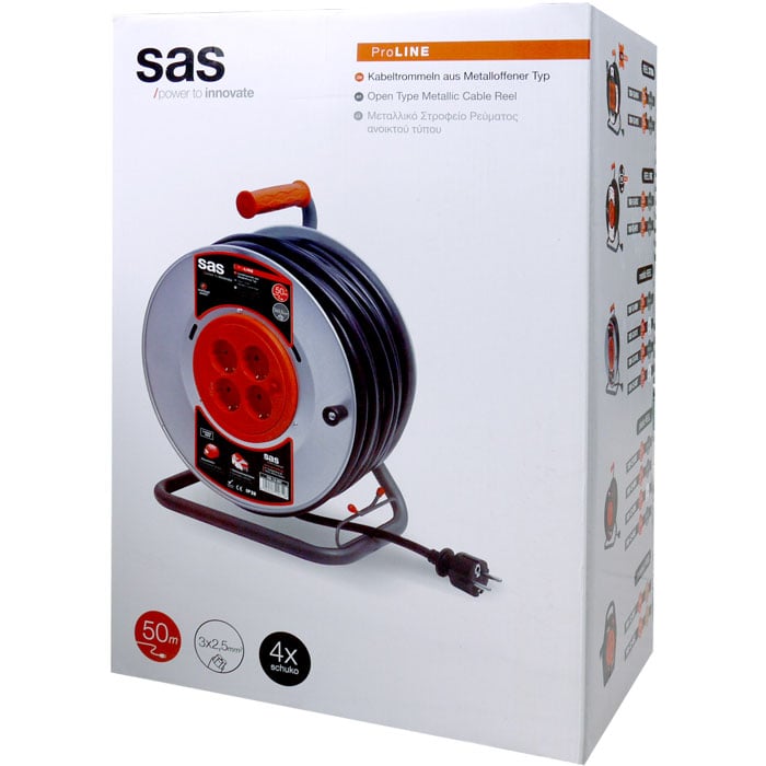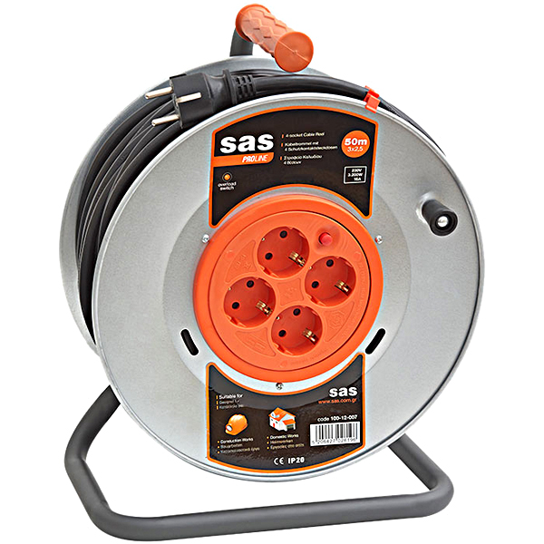 Μεταλλική Μπαλαντέζα Στροφείο Καλωδίου Καρέ Καλωδίου 3x2.5mm² Μήκος Καλωδίου 50m SAS 100-12-007
