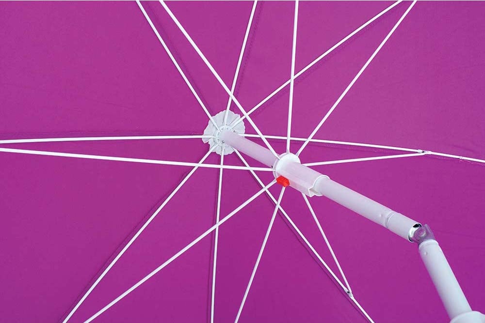 Μεταλλική ομπρέλα παραλίας σε μωβ χρώμα.