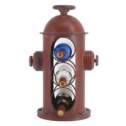 Μεταλλική Θήκη Μπουκαλιών Κρασιού 3 Θέσεων σε Σχήμα Πυροσβεστικού Κρουνού, Κάβα Ποτών, Vintage Μπουκαλοθήκη 29x23x46.5cm