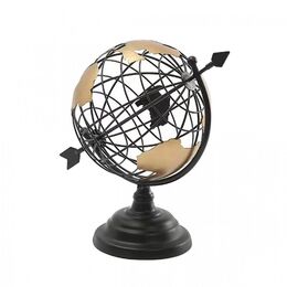 Μεταλλική Υδρόγειος Σφαίρα Επιτραπέζια Διακοσμητικό σε Μαύρο και Χρυσό