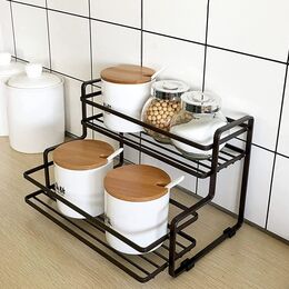 Μεταλλική Βάση Οργάνωσης Πάγκου για την Κουζίνα & το Μπάνιο με Δύο Επίπεδα 26x20x17cm - Μαύρο