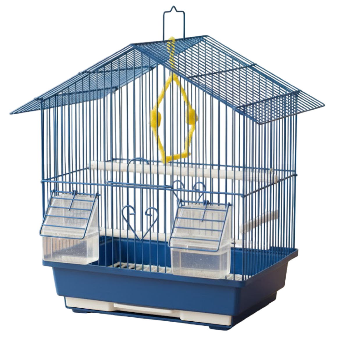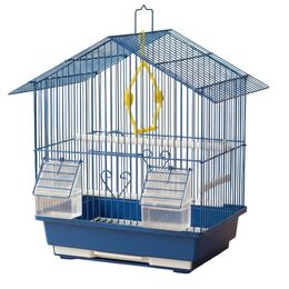 Μεταλλικό Κλουβί Πτηνών με Κεκλιμένη Οροφή, Ταΐστρες και Πλαστική Βάση 29.5 x 22.3 x 38.5cm Μπλε