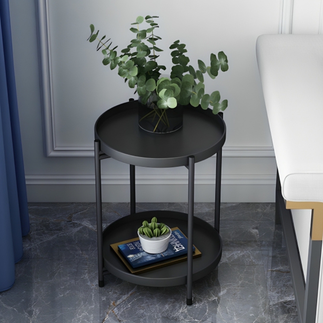 Μεταλλικό Στρογγυλό Βοηθητικό Τραπεζάκι 2 Επιπέδων Sentosa - 36 x 36 x 51 εκ