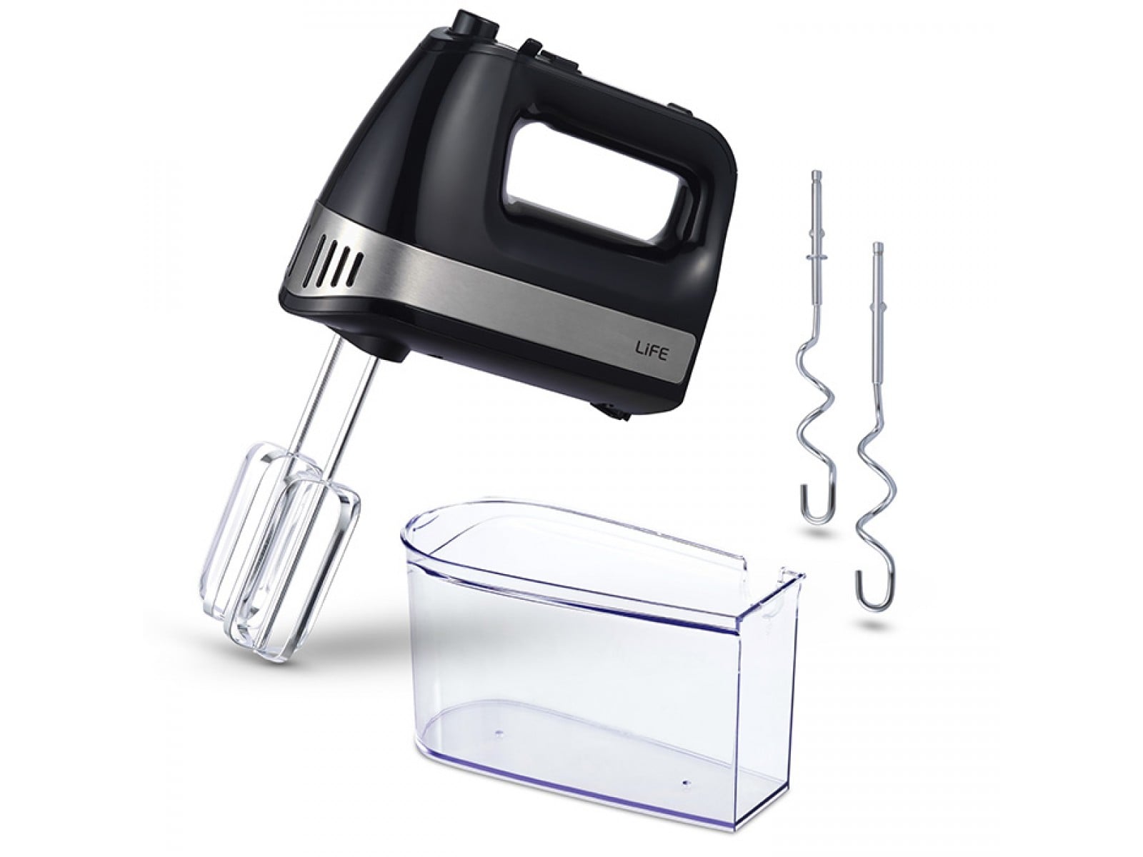 Μίξερ Χειρός 5 Ταχυτήτων 500W με Μπολ Ανάμιξης,Αποθήκευσης Life Power Mix Μαύρο