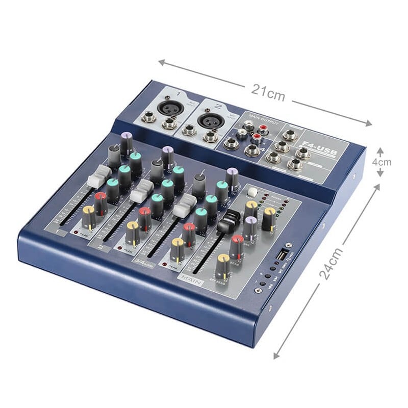 Μίκτης Ήχου 4κάναλος & 3-Band EQ, Θύρα USB, AUX & 2 Είσοδοι για Μικρόφωνο